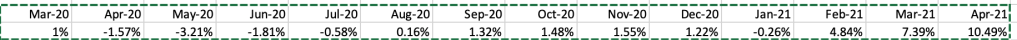 Inflation at Wholesale levels were up 10.49% in April-2021.